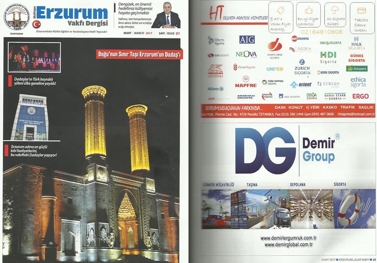 Gecede dağıltılmış olan Maltepe Erzurum Vakfı Dergisi’ne vermiş olduğumuz ilan ile de Erzurum’a olan desteğimizi göstermiş olduk.