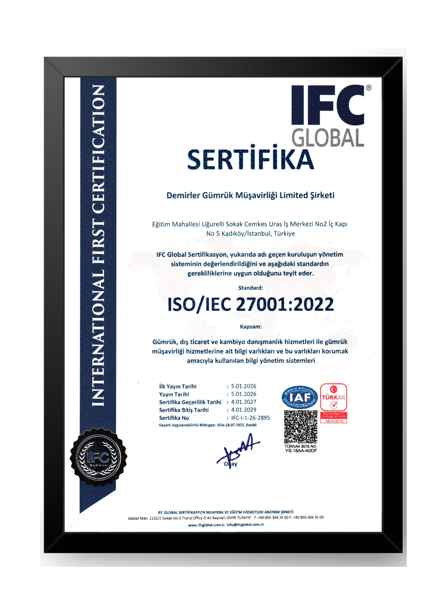 Bilgi değerli bir varlıktır. Her ne pahasına olursa olsun onun korunması gerekmektedir. Bu standart, şirketinizin tüm güvenlik çabalarını elektronik ve fiziksel olarak koordine edilmesine yardımcı olacaktır. ISO 27001’i uygulayan işletmeler ve kurumlar, çok büyük avantajlar elde etmektedir. Potansiyel müşterilere kişisel ve ticari bilgilerin güvenliğini ciddiye alındığını gösterecektir. Bilgi yönetimi konusunda tutarlı ve uygun maliyetli bir yaklaşımın var olmasını sağlayacaktır.